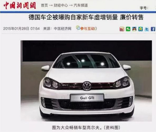 當(dāng)行賄也無法讓數(shù)據(jù)變得好看的時(shí)候,他們就可能自己買自己的車,虛增銷量。2015年,德國經(jīng)濟(jì)新聞網(wǎng)報(bào)道,根據(jù)一項(xiàng)調(diào)查,2014年,德國1/10的新車,都被德國汽車制造商自己買走了。他們會(huì)把新車買回去,再送到二手車市場,以很大的折扣出售。調(diào)查顯示,超過1/5的大眾和保時(shí)捷新車,被自家的公司買走了。2014年,21.4萬輛大眾高爾夫新車注冊數(shù)量里,大眾自購的達(dá)到6.85萬輛。我不知道,這是不是行業(yè)不成文的約定,但那項(xiàng)調(diào)查的結(jié)果就是,知名車企都在自己買自己的車,來讓數(shù)據(jù)更好看。